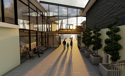 To best create what our client is looking for I created two seperate buildings that are conencted via a bridge on the second floor. One side consists of more private areas and the other consists of more public areas.