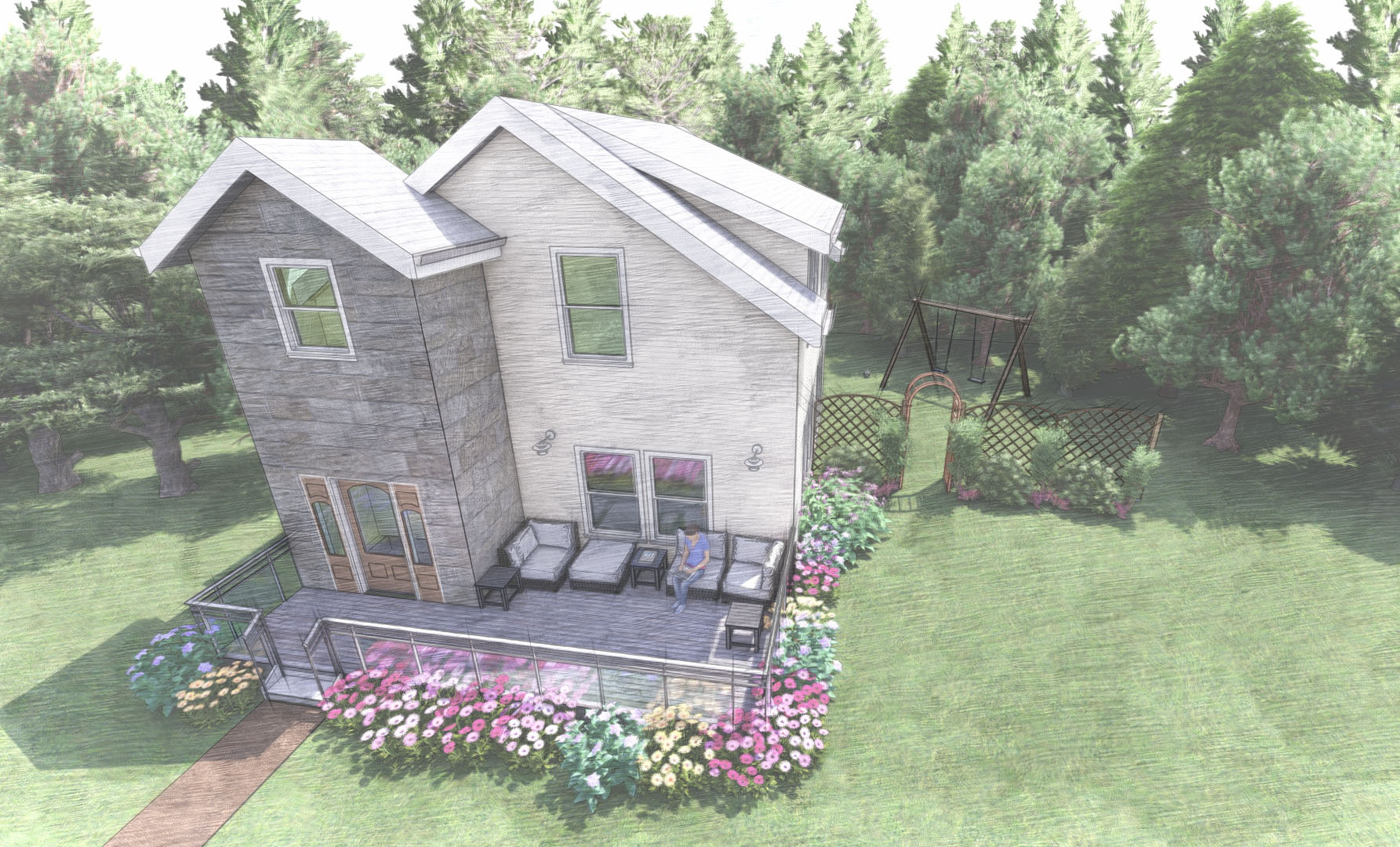With such a small square footage on the inside of the house, I created massive porch and deck space as I wanted to celebate outdoor space rather then indoor.